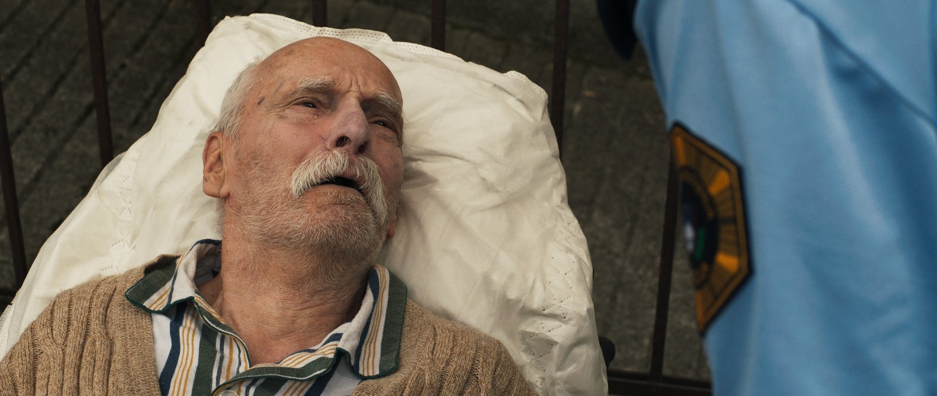 In an apartment building, residents call the police and the SPCA to stop a dog's incessant barking. What is going on behind the locked door of the flat belonging to the elderly everyman?