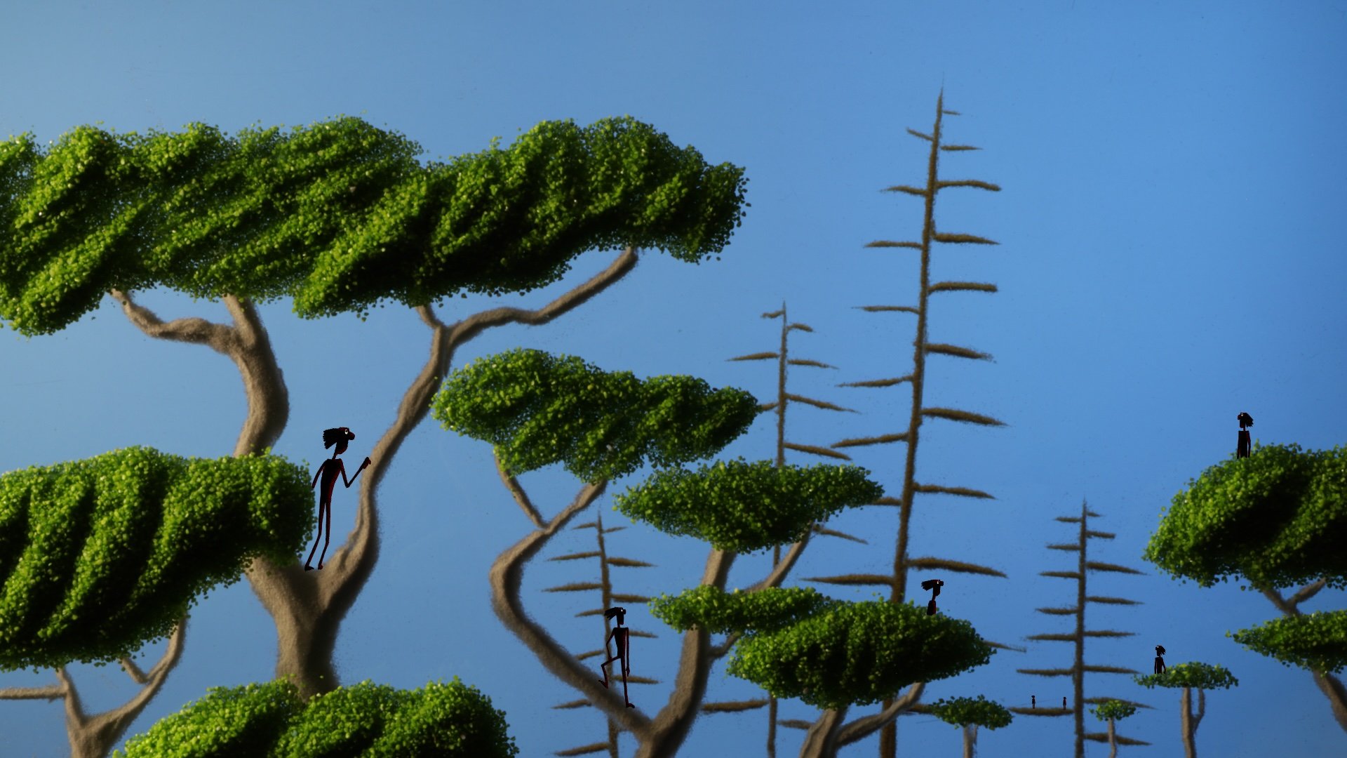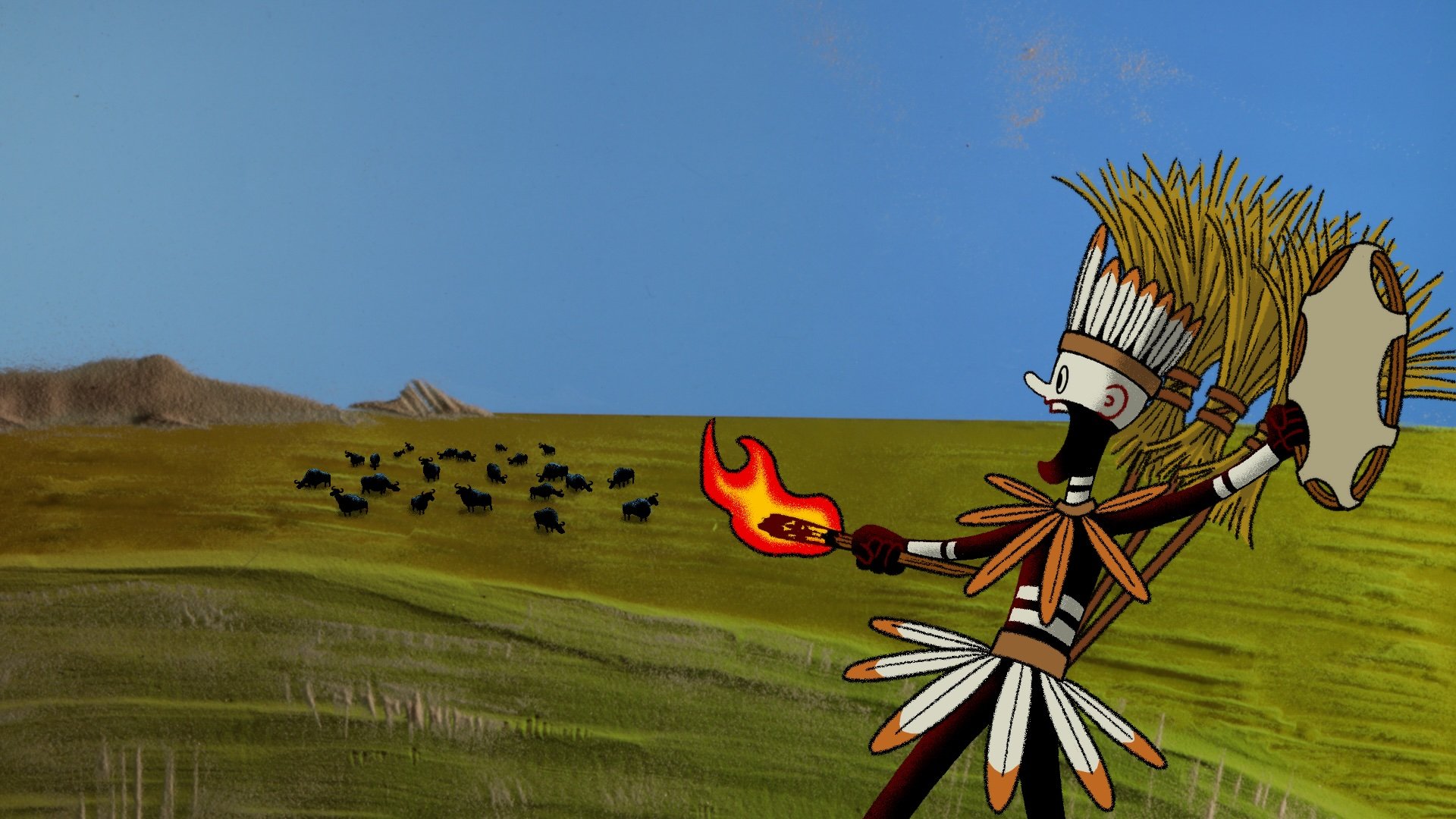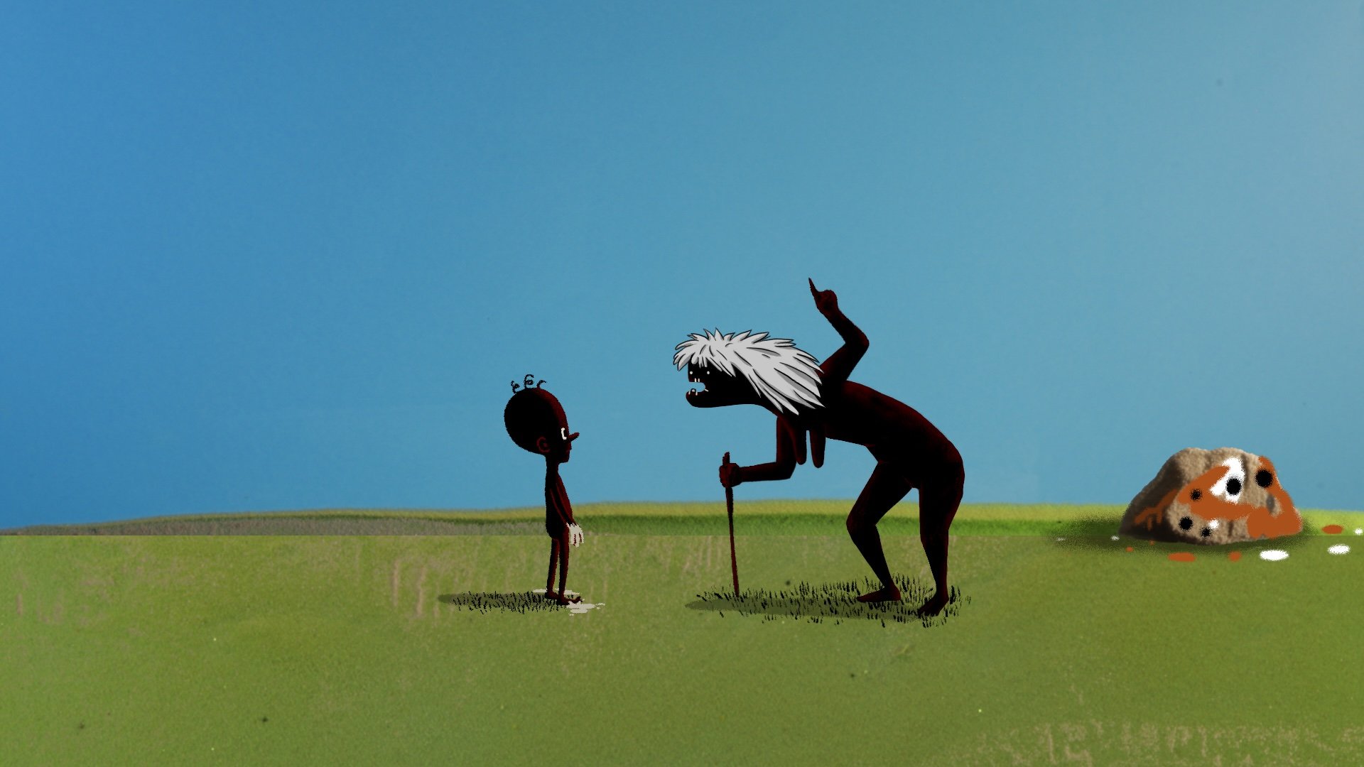 It is a dark night, everyone is asleep, but a tired father tells his restless son a bedtime story, a legend about the origins of their tribe, a tribe of upright people. The story begins long, long time ago, when people lived very comfortably. Most of the time they did nothing and rested all day. Then a young couple had a child with an unusually large head. Peace was over and time for progress begins ...